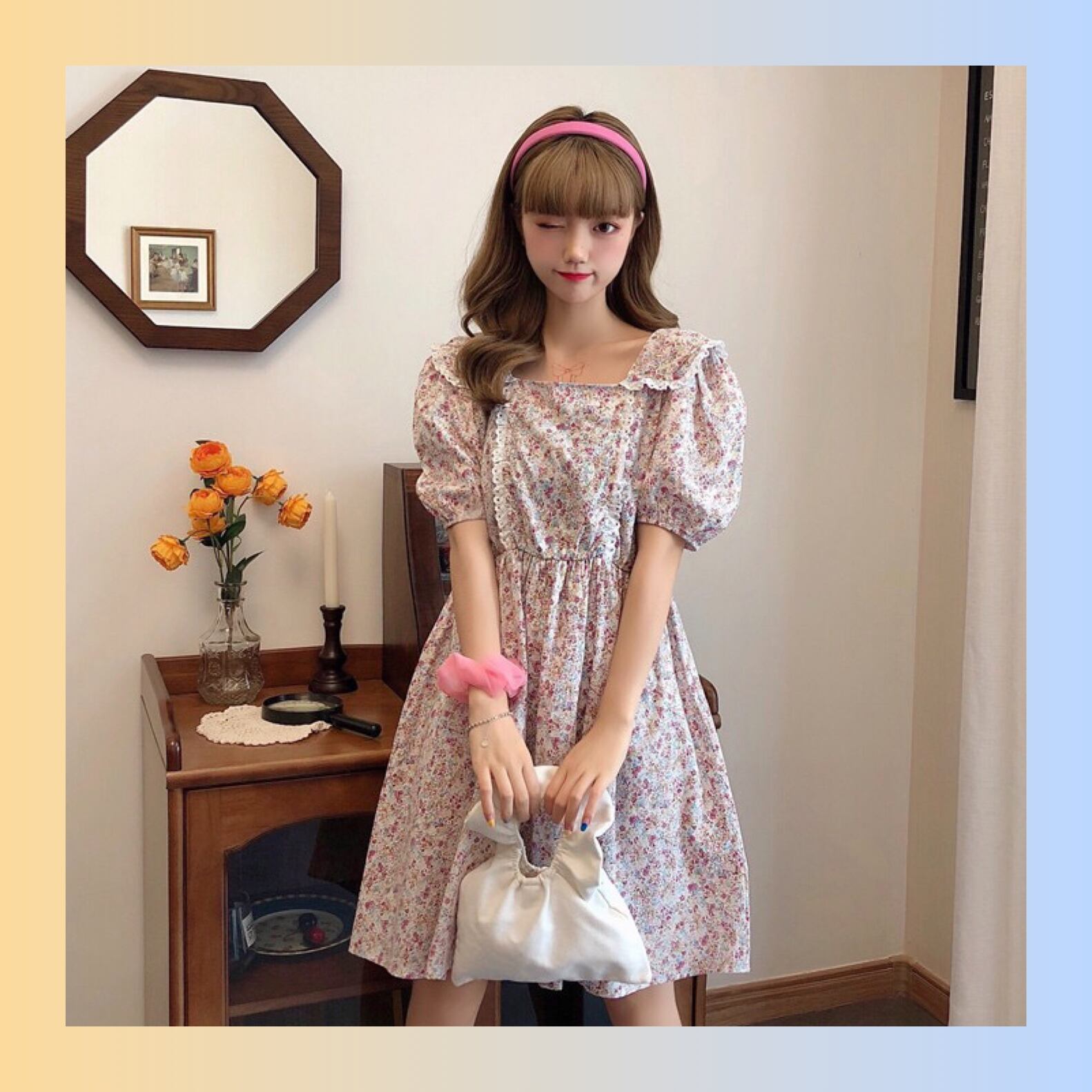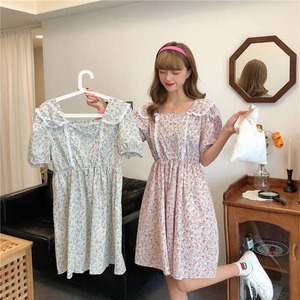 【お取り寄せ】花柄 開襟 ワンピース 2色